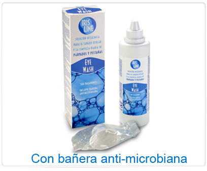 Aplicar unas gotas de la solución sobre un algodón y limpiar suavemente el párpado y la zona periocular. Cambiar de algodón para el otro ojo.